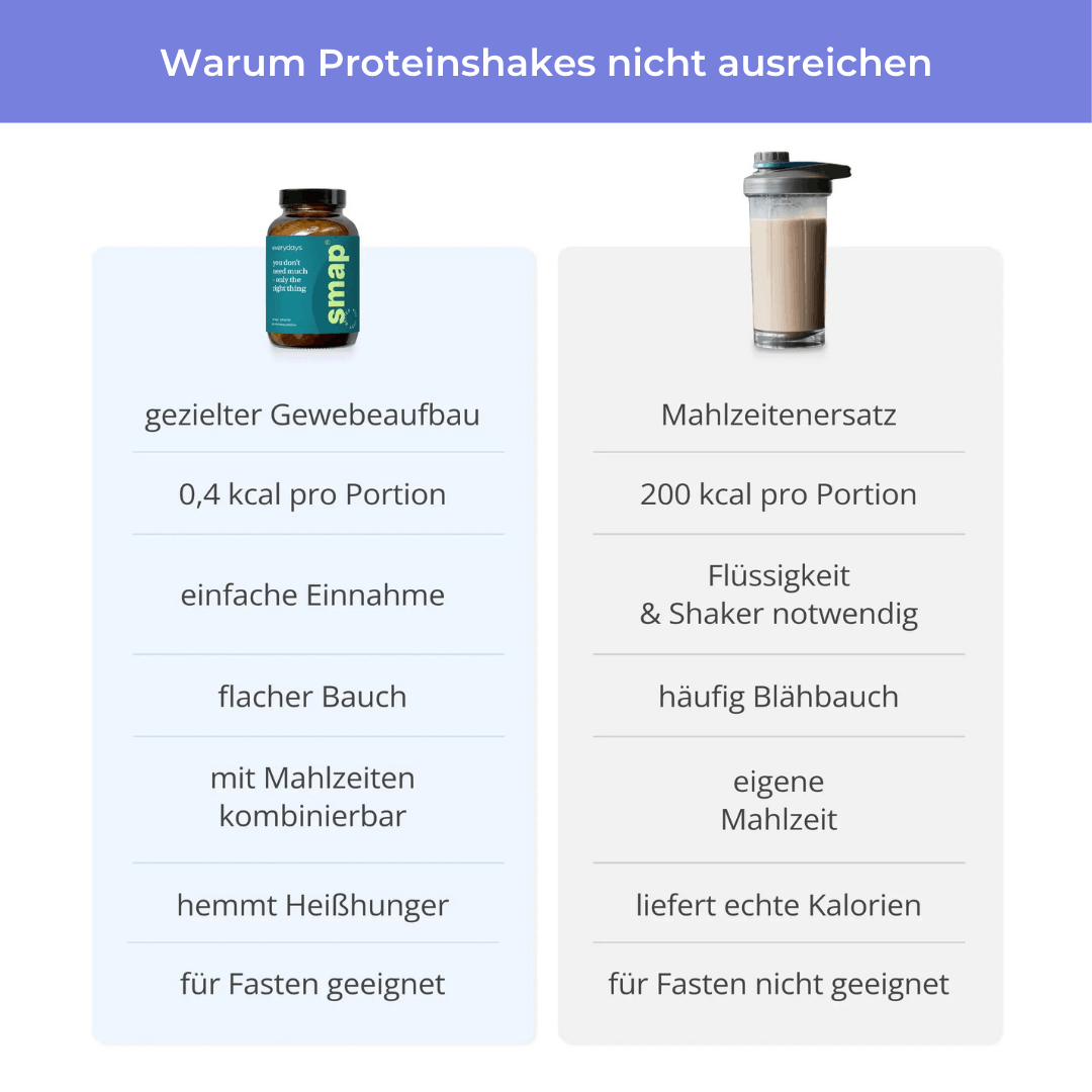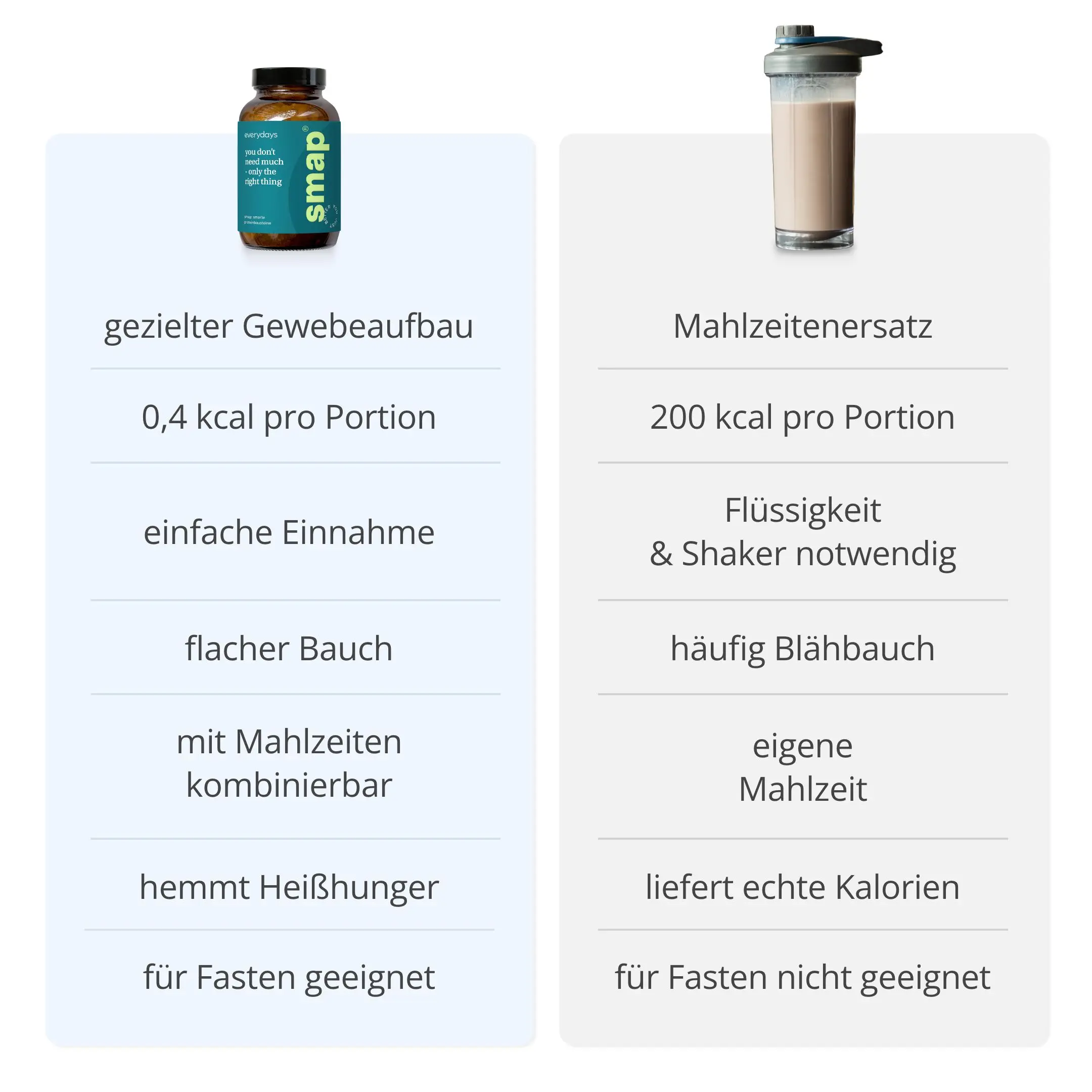 Weil smap® keine Energie liefern soll, sondern gezielt Proteinbausteine.