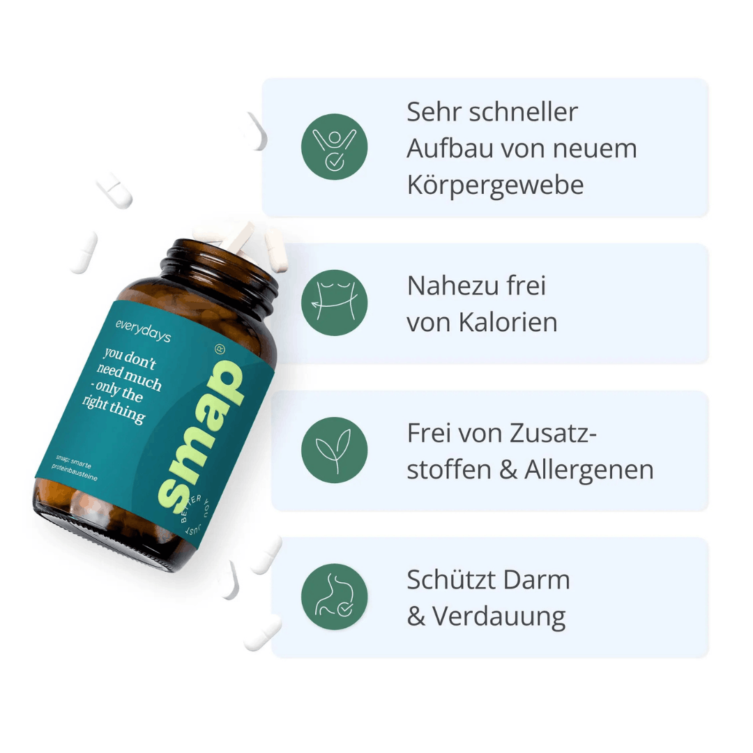 smap liefert gezielt nur die Bausteine für Muskeln und Gewebe – ohne Fett- oder Zuckerballast.
