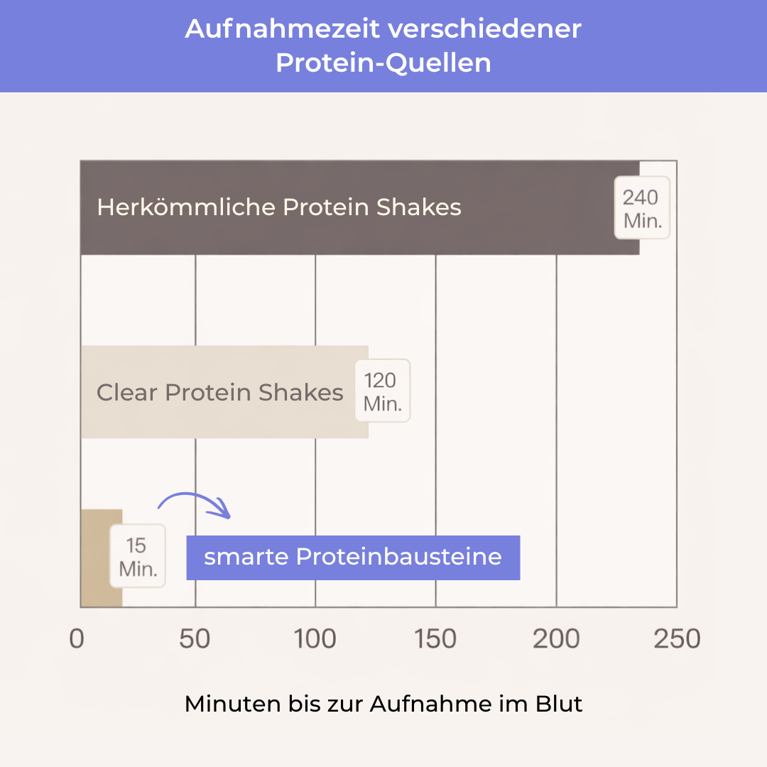 Bestätigt: „Smarte Proteinbausteine“ sind so rein und effizient, dass sie 8–16-mal schneller im Blut verfügbar sind.