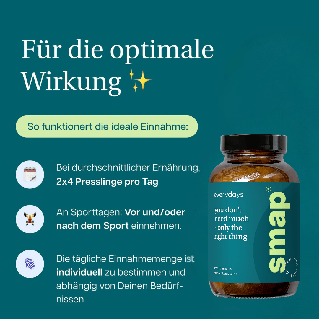 smap® Eiweißpresslinge für einen stabilen, straffen und gesunden Körper.