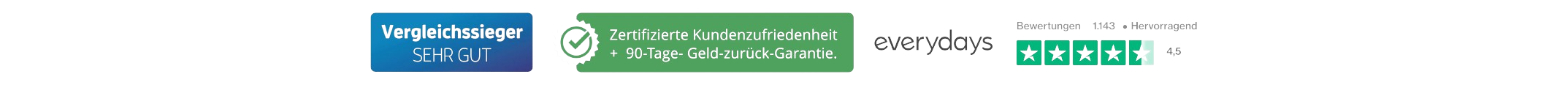 ✔ 90-Tage-Zufriedenheits-Garantie: everydays erstattet bei Unzufriedenheit den Betrag meist noch am selben Werktag zurück.