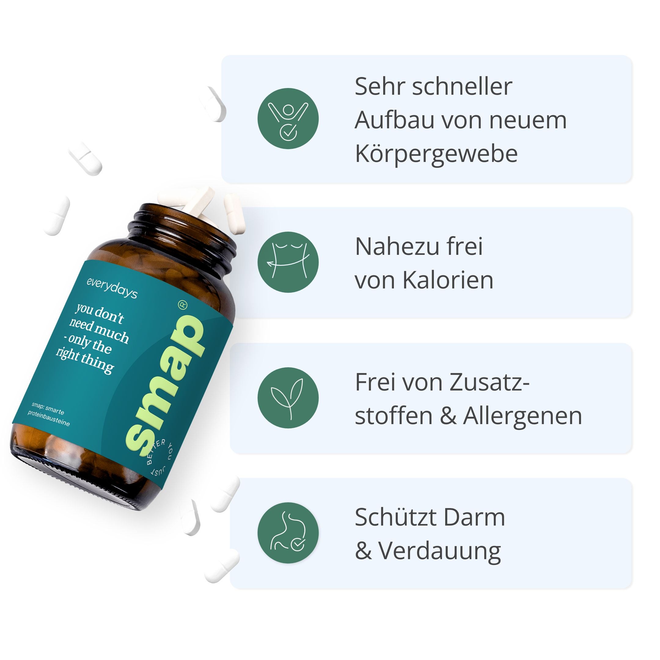 smap® Eiweißtabletten für einen stabilen, straffen und gesunden Körper.